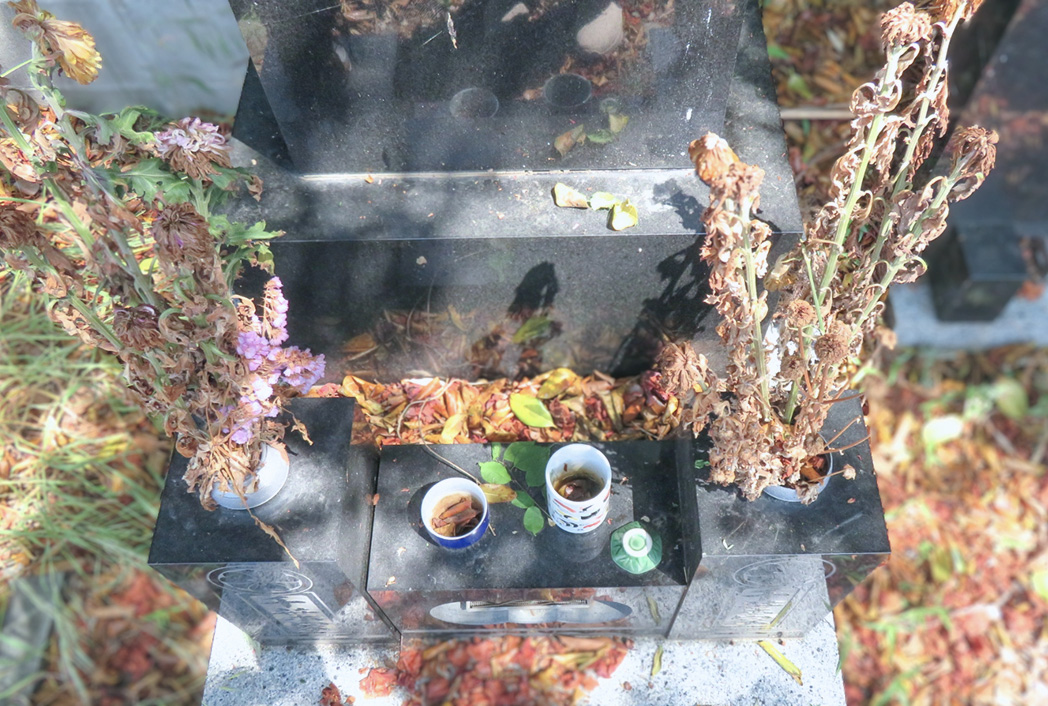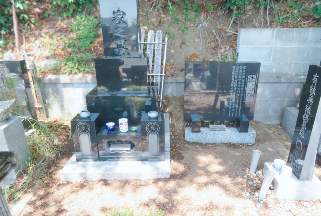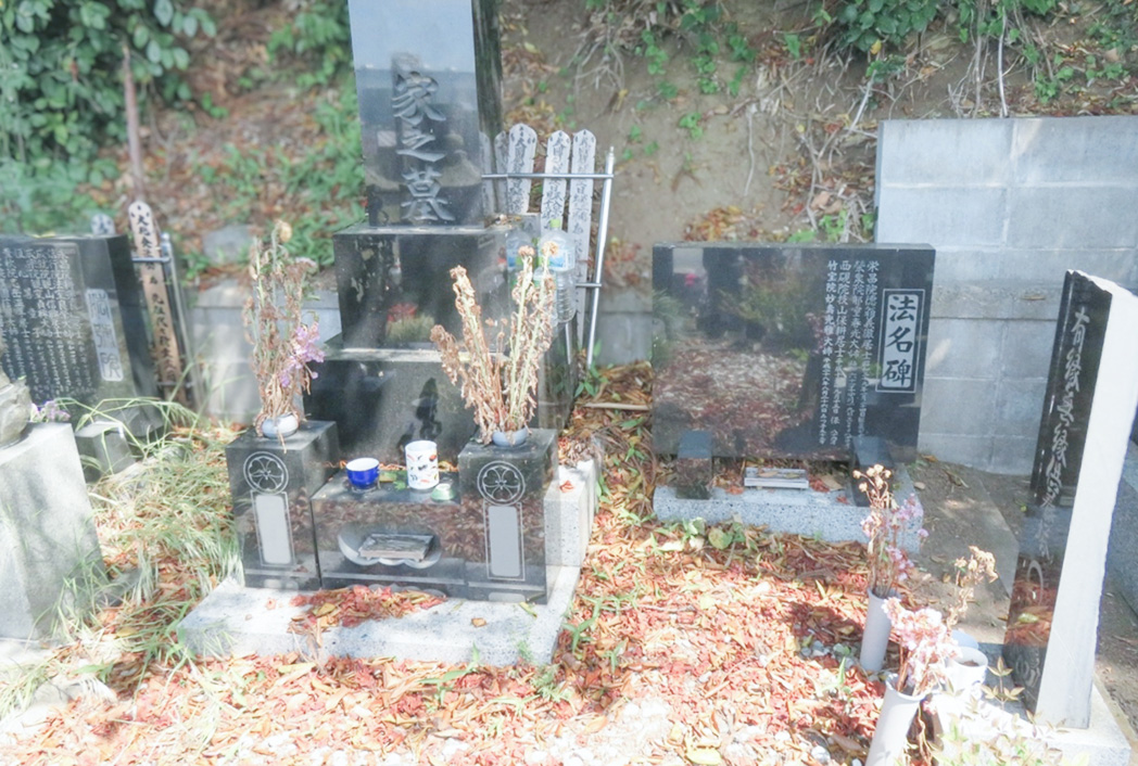 墓石1基・物置台1基・墓誌1基・物置台の拭き掃除・区画内のゴミ拾い・落ち葉拾い・草取り・香炉清掃・湯呑清掃・水交換・お線香